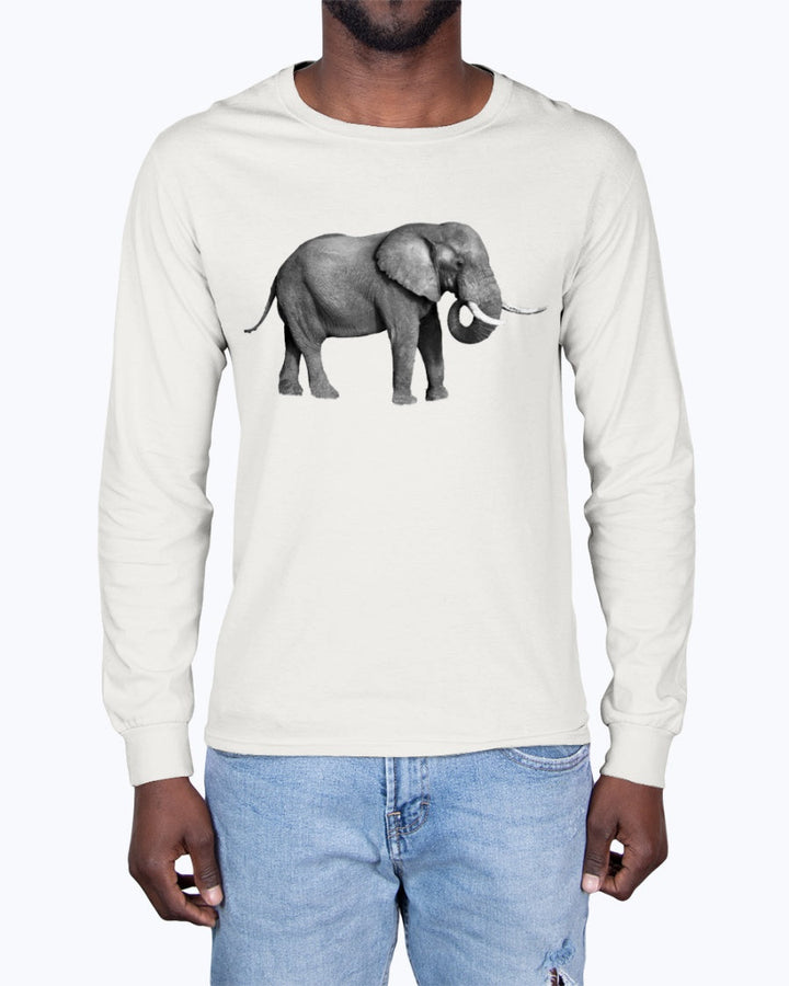 Elevate your essentials with our Grazing African Elephant premium long sleeve tee, crafted from 100% Airlume combed and ring-spun cotton for a smooth, breathable feel. This shirt offers a tailored silhouette with fitted sleeves, ribbed cuffs, and side-seamed construction for a clean, modern fit that moves with you—from trail days to city nights.