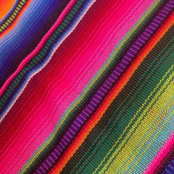 Discover our Hacienda Pillow Cover, meticulously handcrafted by skilled artisan Laura in the highlands of Guatemala. This foot-loomed beauty boasts a captivating sarape-style pattern, masterfully woven with vibrant summer hues. Embrace artisanal flair and fair trade practices with this eye-catching addition to any room, adding a burst of vibrant style to your home decor.