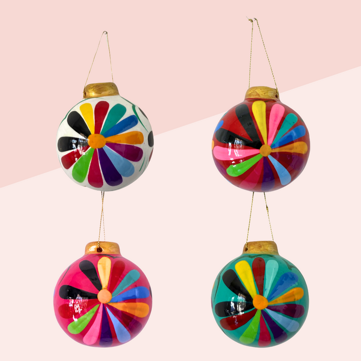 Hand-Painted Ceramic Colorful Sphere Boho Flower Ornament - Mexico