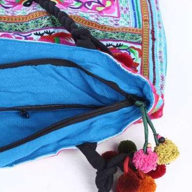 Handcrafted with love by skilled artisans in Thailand using traditional techniques, this stylish tote bag is sure to bring joy to your day. The bag features beautiful embroidery and is lined with soft cotton for added durability. The playful pom pom fringe adds a fun touch, making it perfect for any occasion.