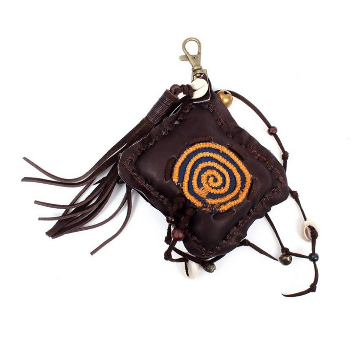 Crafted by hand in the highlands of Thailand, this limited edition leather zipper pull is a thoughtful addition to your keys, bag, or hoodie. Each piece is made from soft brown leather and embroidered with traditional detail, then finished with natural shells and a sturdy hook. Whether you're on the go or gifting it to someone special, this item blends function with global artisan flair. Every purchase helps support ethical craftsmanship and empowers our artisan partners in Northern Thailand.