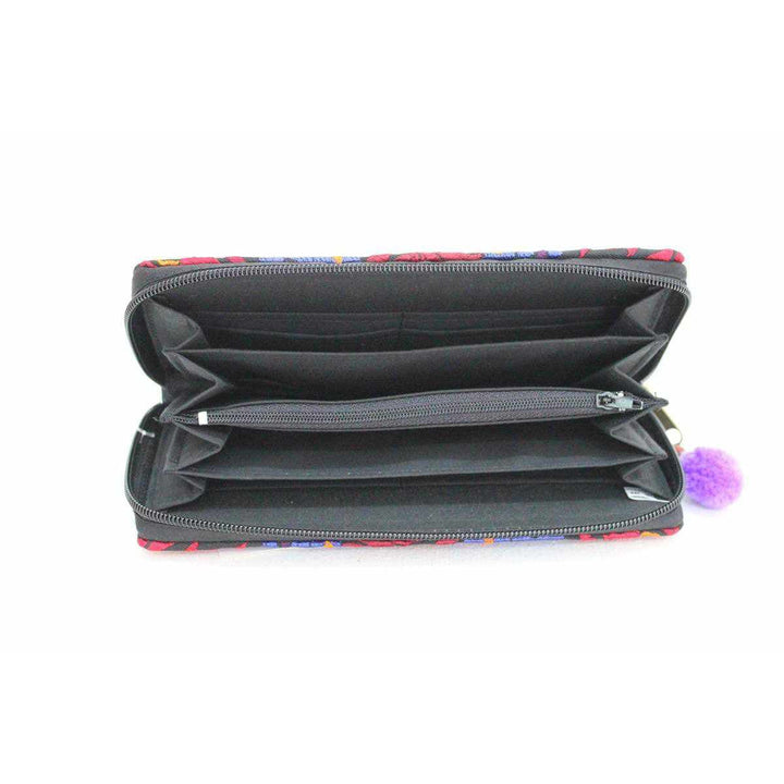 Finished with a zippered closure with eight card slots and four compartments, this wallet will add color and style to any ensemble.