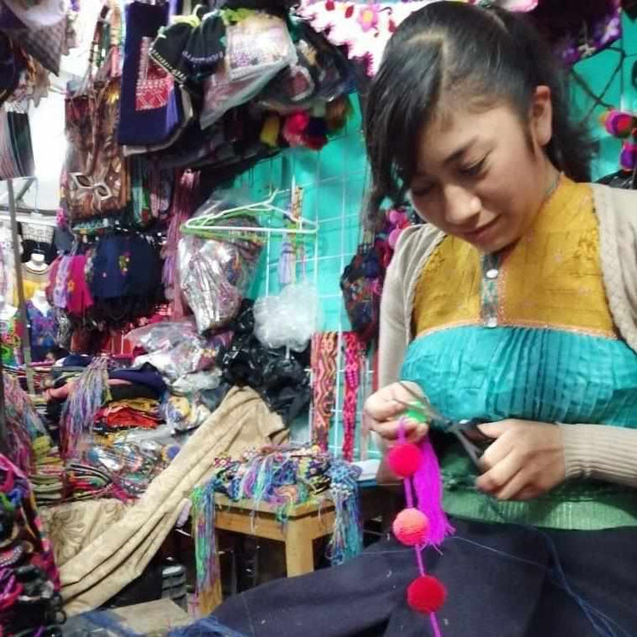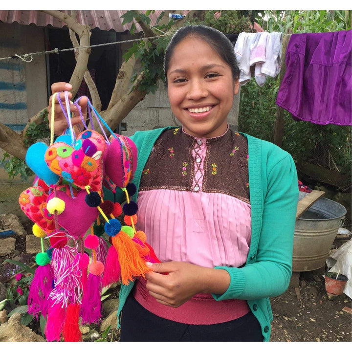 Add some fun and playful charm to your home or party with this vibrant and multicolored pompom garland, crafted with care by the skilled hands of artisan Abigail in Mexico. Each pompom is handmade and tied together to create a string of joy and color that will brighten up any room. Get ready to add a touch of cheer to your life with this gorgeous and unique garland!