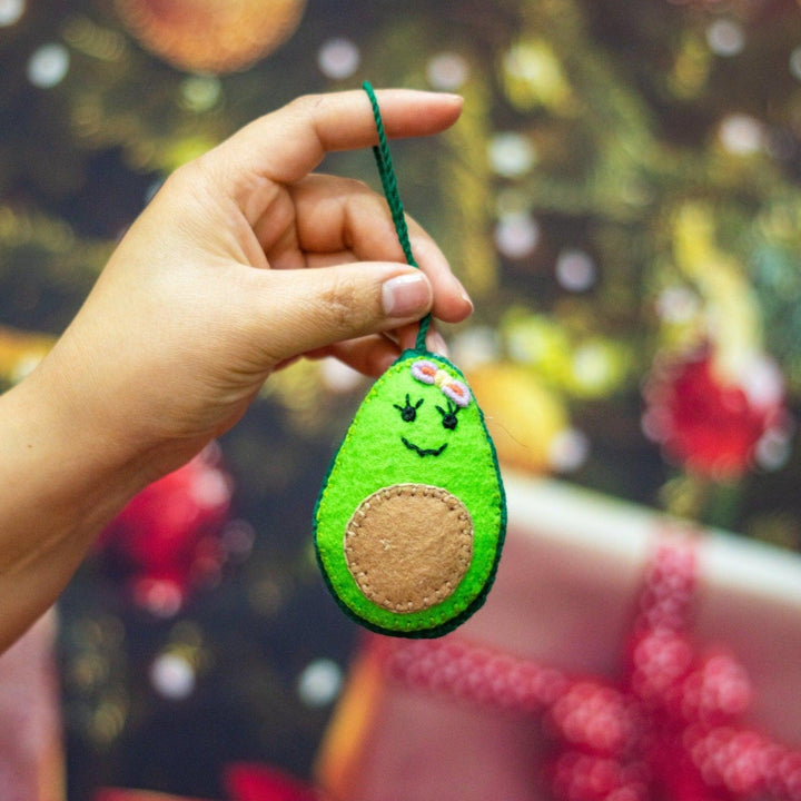 Happy Avocado Felt Handmade Boho Ornament - Mexico