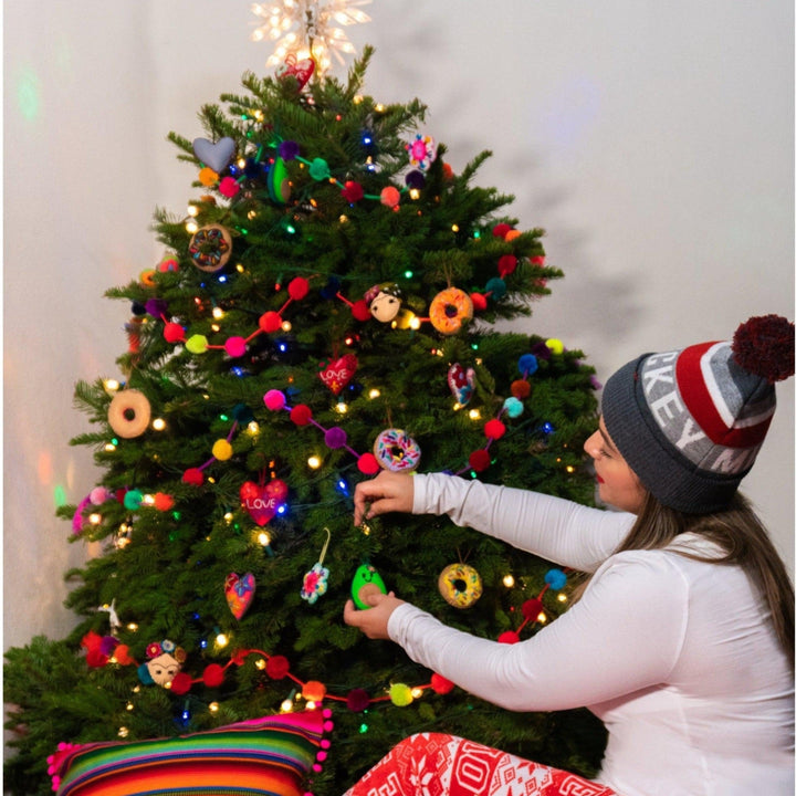 By purchasing these ornaments, you are supporting the work of these artisans and making a difference through fair trade practices. The back of each ornament is made of solid color felt. Each ornament is handmade in Mexico. Thank you for supporting their craft and their community.