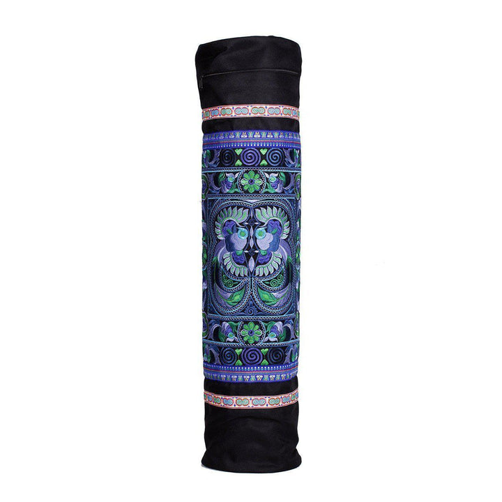 Our Happy Birds Hmong yoga bag is handmade using a gorgeous flower embroidery inspired from traditional fabric from the Hmong hill-tribes in Northern Thailand. A zippered closure on the side to easily take your mat in and out. Extra wide circumference for thicker mats. Includes a phone/key pocket on the top to keep essentials!