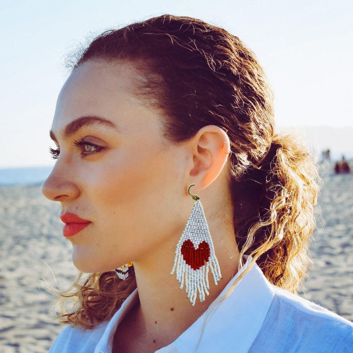 Heartfelt Valentine's Day Seed Bead Earrings - Thailand