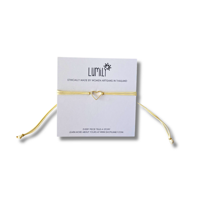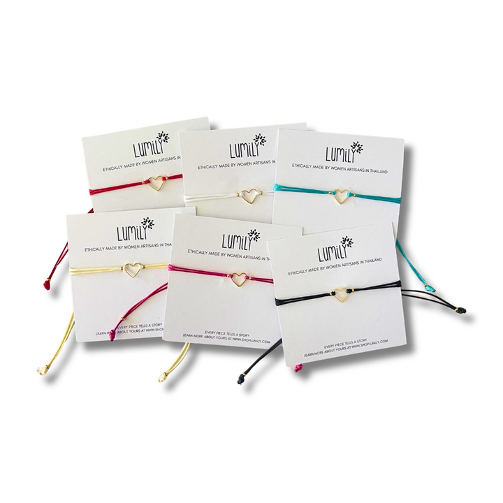 Celebrate love with our non-tarnish Heartstring Love Brass Heart Bracelet, thoughtfully handmade in Thailand. This dainty, minimalist bracelet features a delicate brass heart, making it the perfect understated piece to wear on Valentine's Day or any day you want to carry a little extra love with you. Crafted with attention to detail, this limited edition item is a timeless addition to your jewelry collection, offering a touch of elegance and meaning.