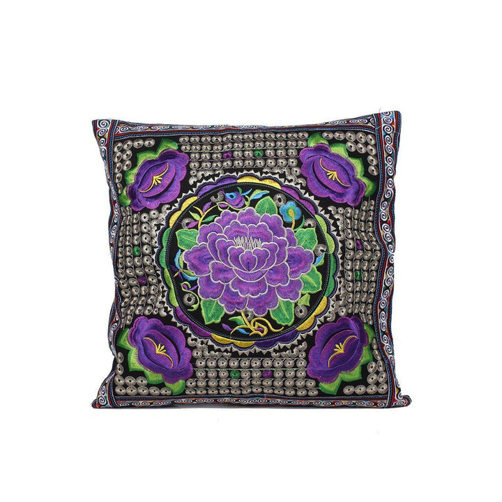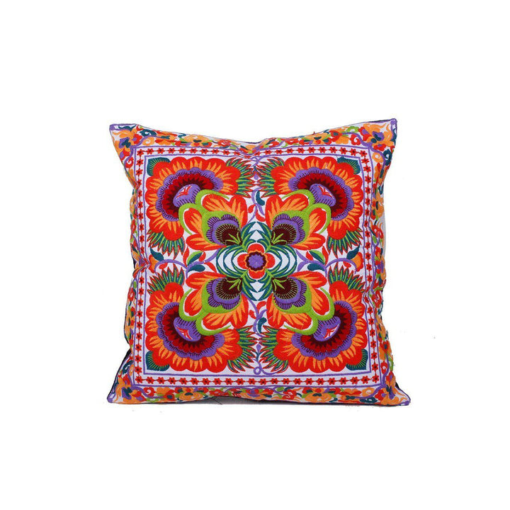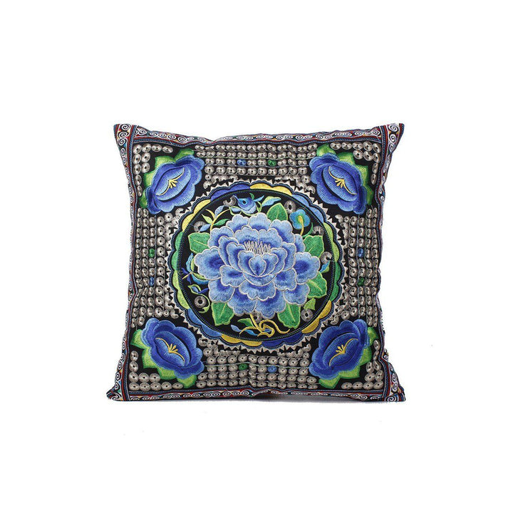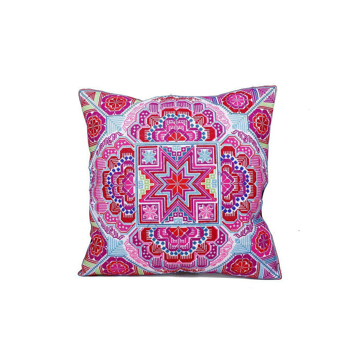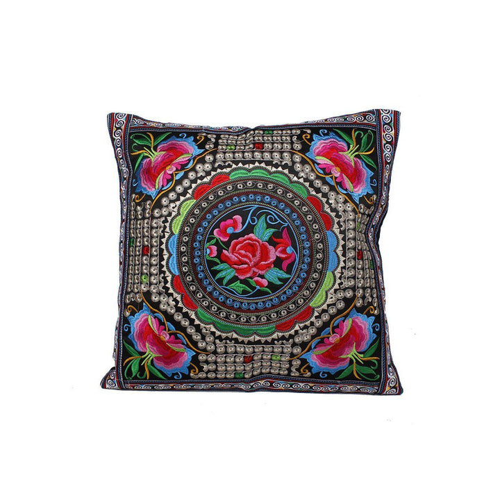 Hmong Embroidered Floral Pillow Cover - Thailand