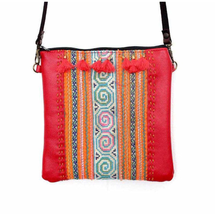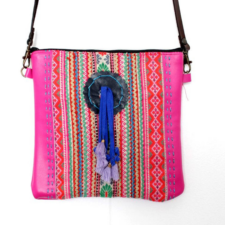 Hmong Fabric and Leather Crossbody Bag - Thailand