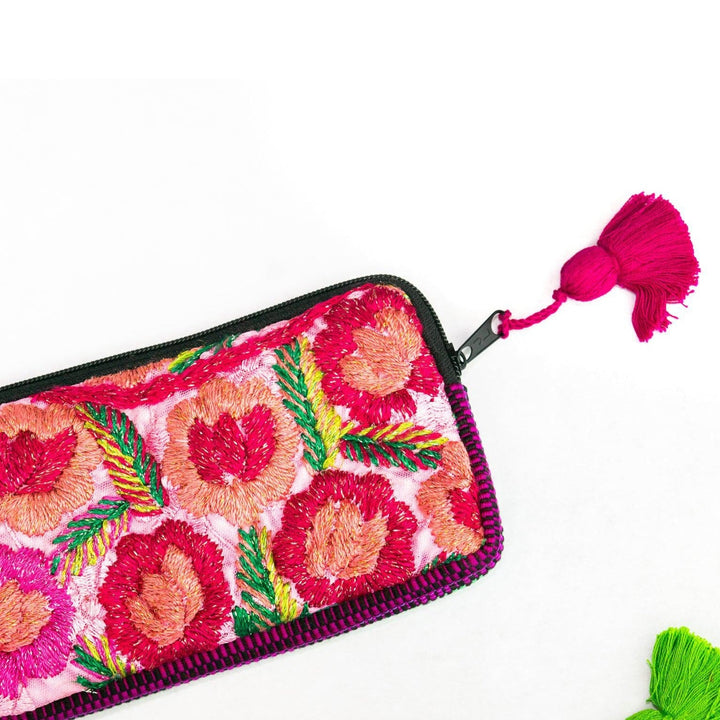 Our flower wallet combines practicality and beauty in a unique and sustainable way. Handcrafted from a traditional Guatemalan garment, this one-of-a-kind item has already lived a full life and is now part of a cycle of sustainability. The intricate patterns on the fabric represent different regions and can indicate social status and dialect. No two pieces are alike, making this wallet a truly unique addition to your collection.