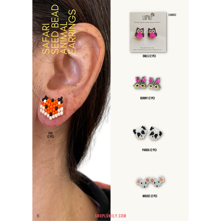 - 2 Safari Earrings (Bunny, Mouse, Panda. Owl, Fox)