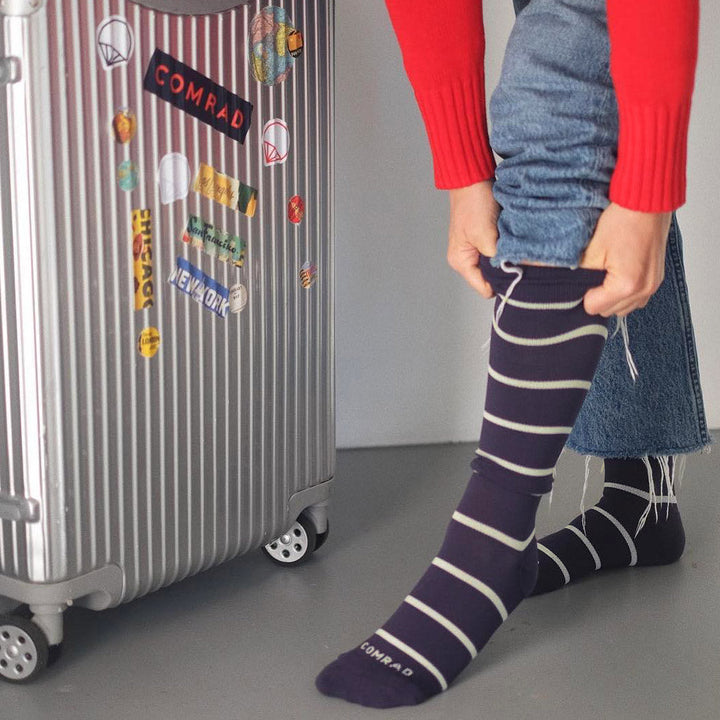 Knee-High Compression Socks – Stripes Navy (20-30 mmHg)