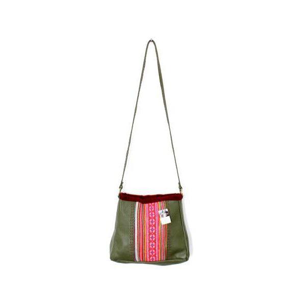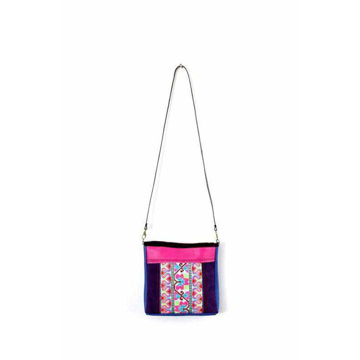 Soft leather is combined with gorgeous embroidered Hmong fabric to create this gorgeous cross-body bag. Lined inside with an inside pocket.