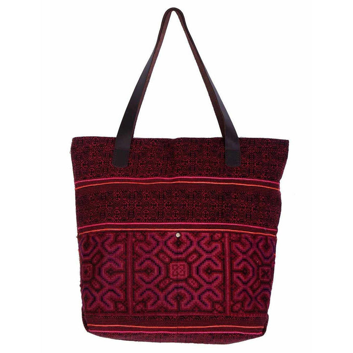 Leather Embroidered Texile Hmong Tote - Thailand