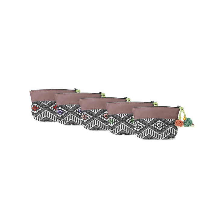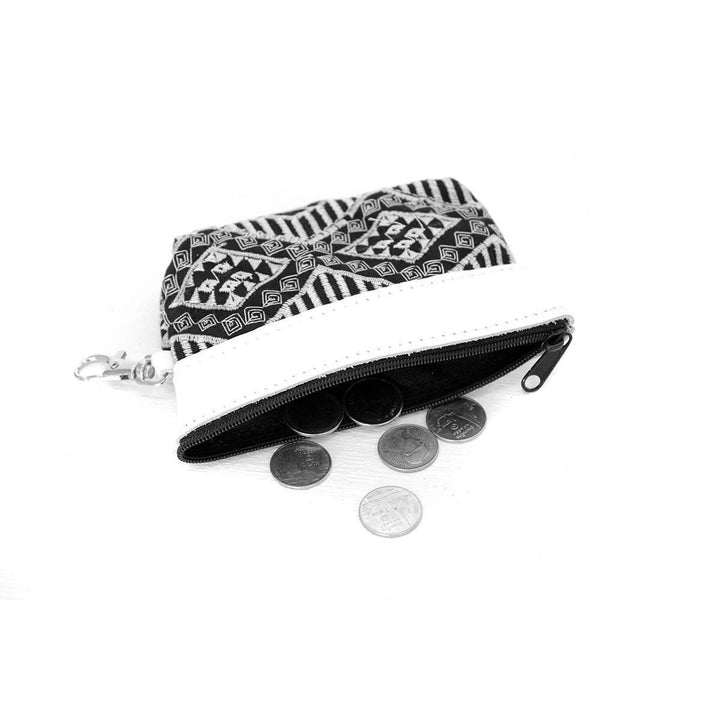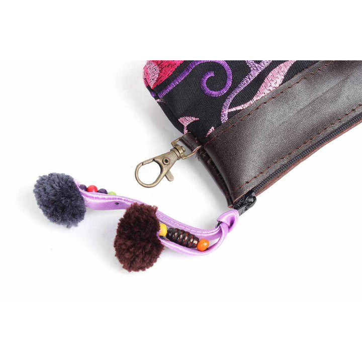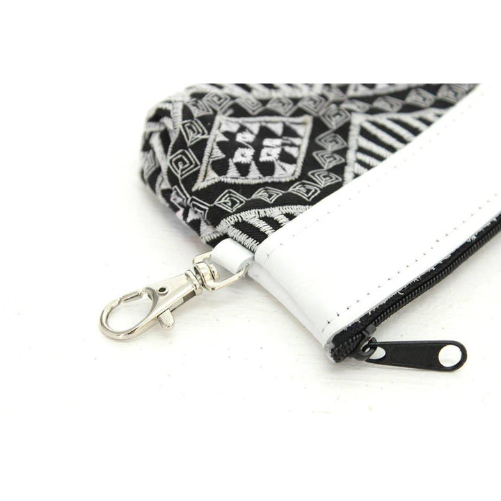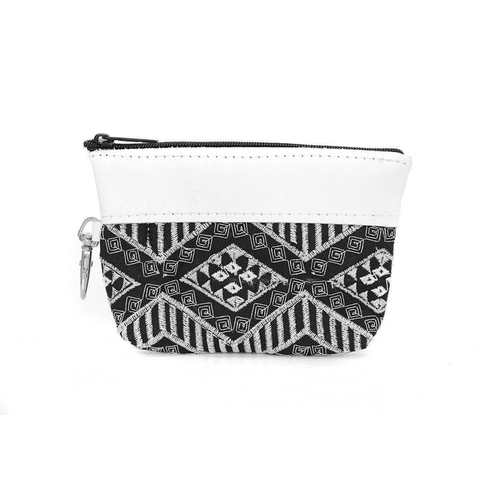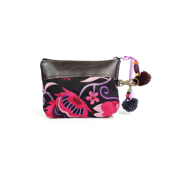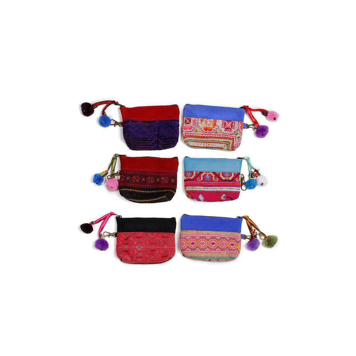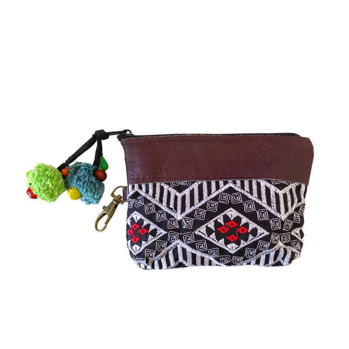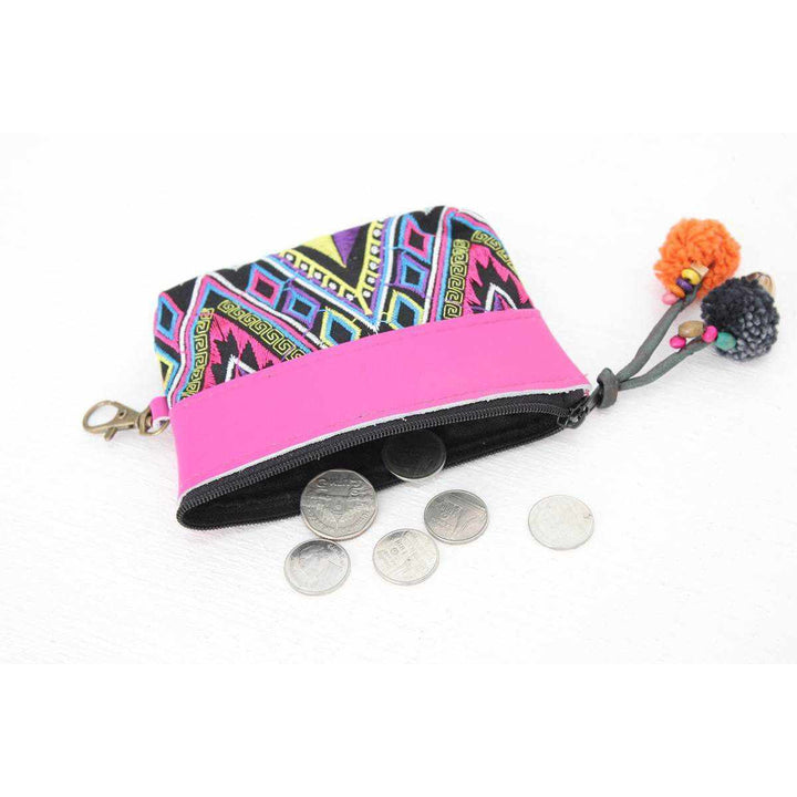 Leather Trim Embroidered Geometric Coin Purse - Thailand