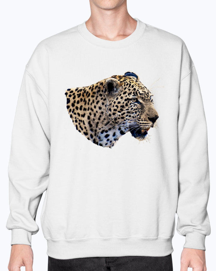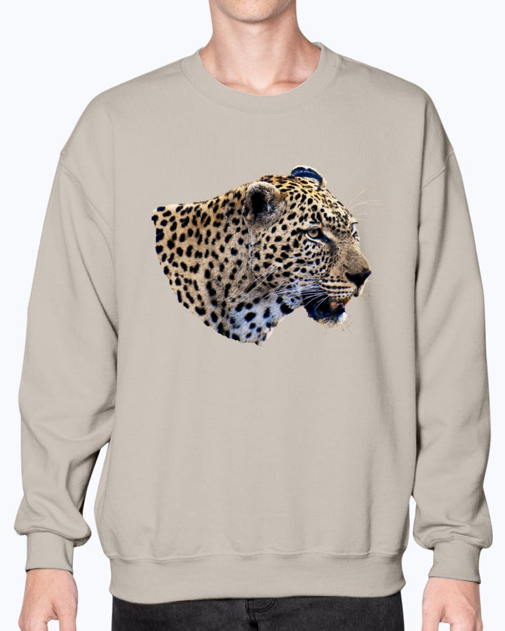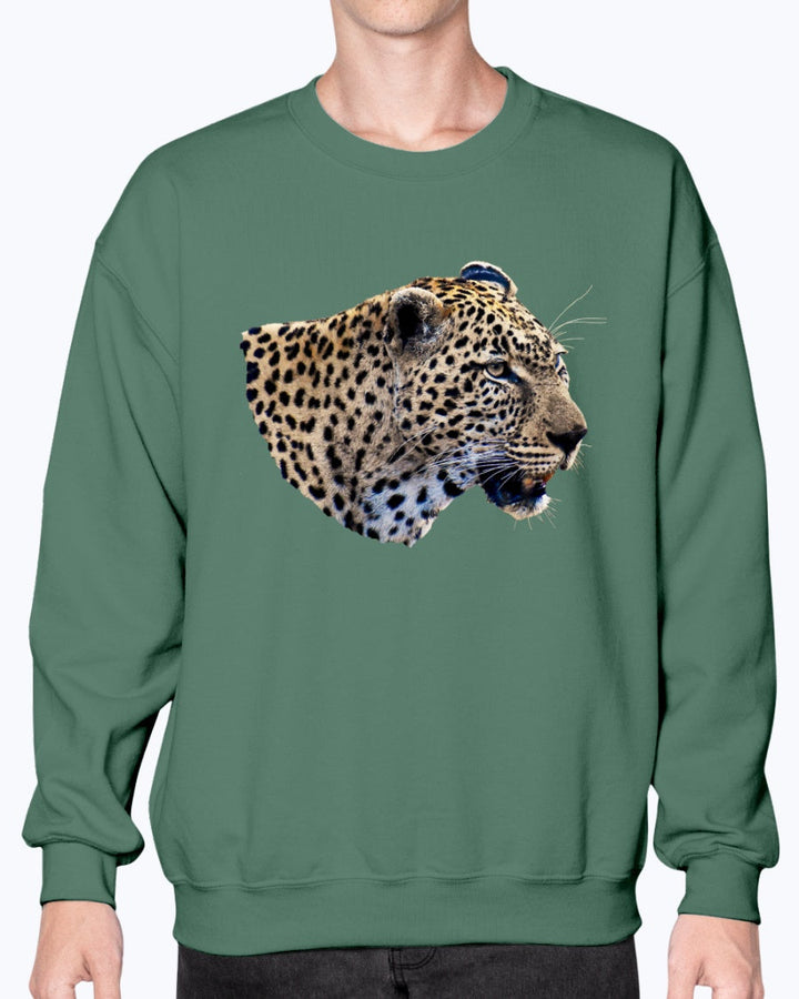 Leopard's Smile, Nature Lover's Cozy Apparel, cat lovers, wildlife fans, Moss Apparel, Unisex Crewneck Sweatshirt