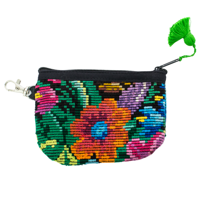 Coin purse Leti is handcrafted from huipil fabric which is a traditional shirt worn by Maya women in Guatemala. Each huipil is one of a kind, so no two bags are the same. Fully lined with a zip closure accented with a colorful cotton tassel.