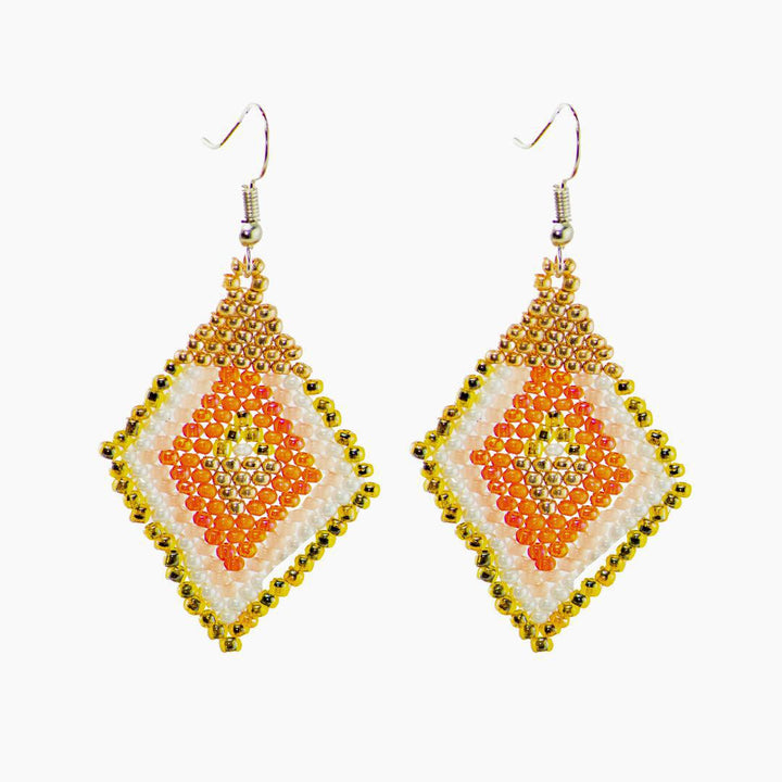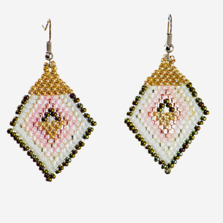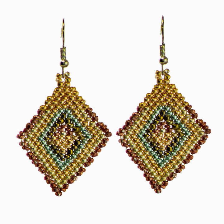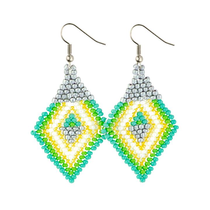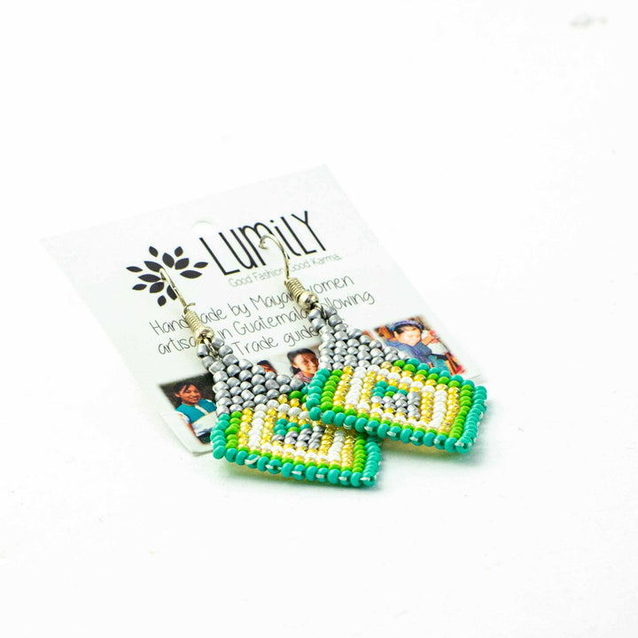 Elevate your look with our stunning Lily earrings, handmade by skilled artisans in the highlands of Guatemala using Fair Trade practices. These beaded earrings feature a beautiful diamond design made with Czech glass seed beads, in a variety of colors to match any outfit.