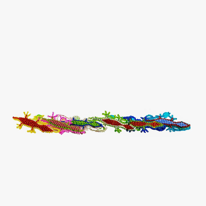 Introducing the Lizard Seed Bead Kids Bracelet, a beautiful and eco-friendly accessory handmade in Guatemala by the talented artisan Maria. This bracelet is a true work of art, featuring intricate seed bead designs in assorted colors that are sure to catch the eye.