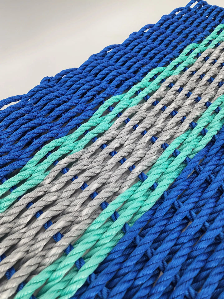 Lobster Rope Door Mat, Blue and Light Gray, Teal accents