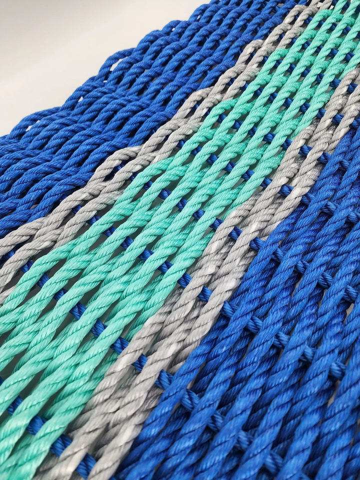 Lobster Rope Door Mat, Blue and Teal, Light Gray accents