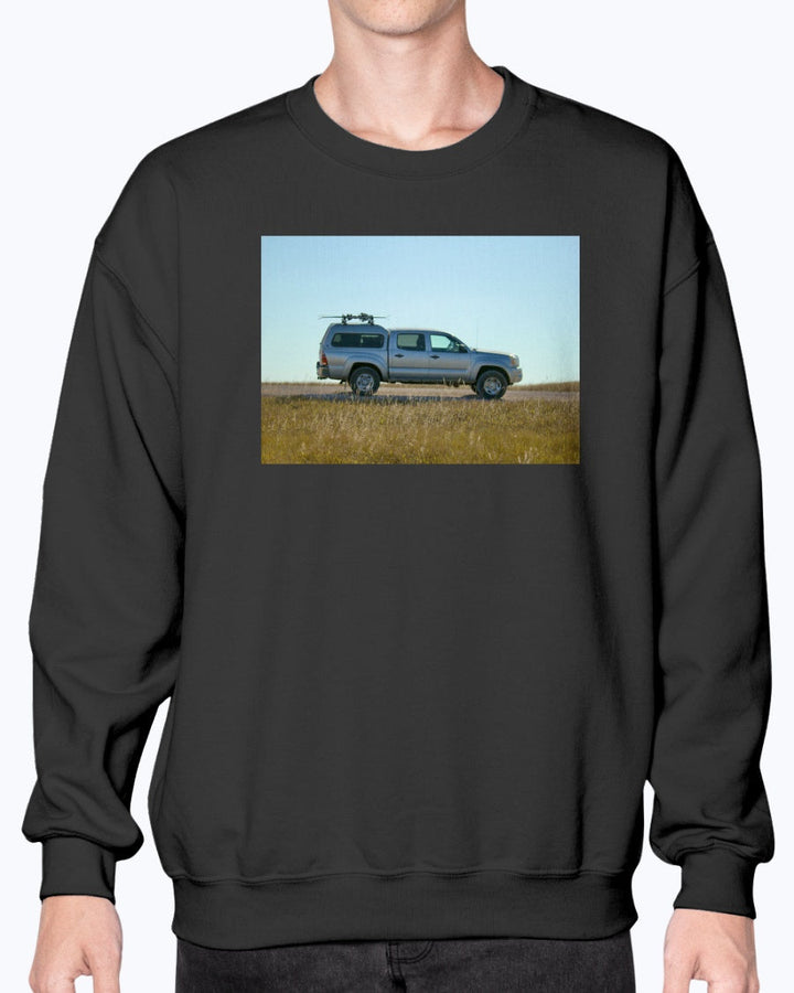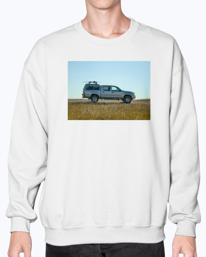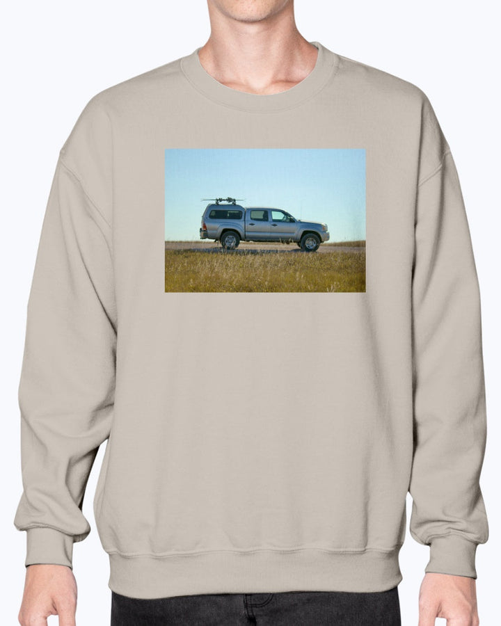 Lost Skier in a Tacoma, Bad Lands South Dakota, Moss Apparel, Unisex Crewneck Sweatshirt