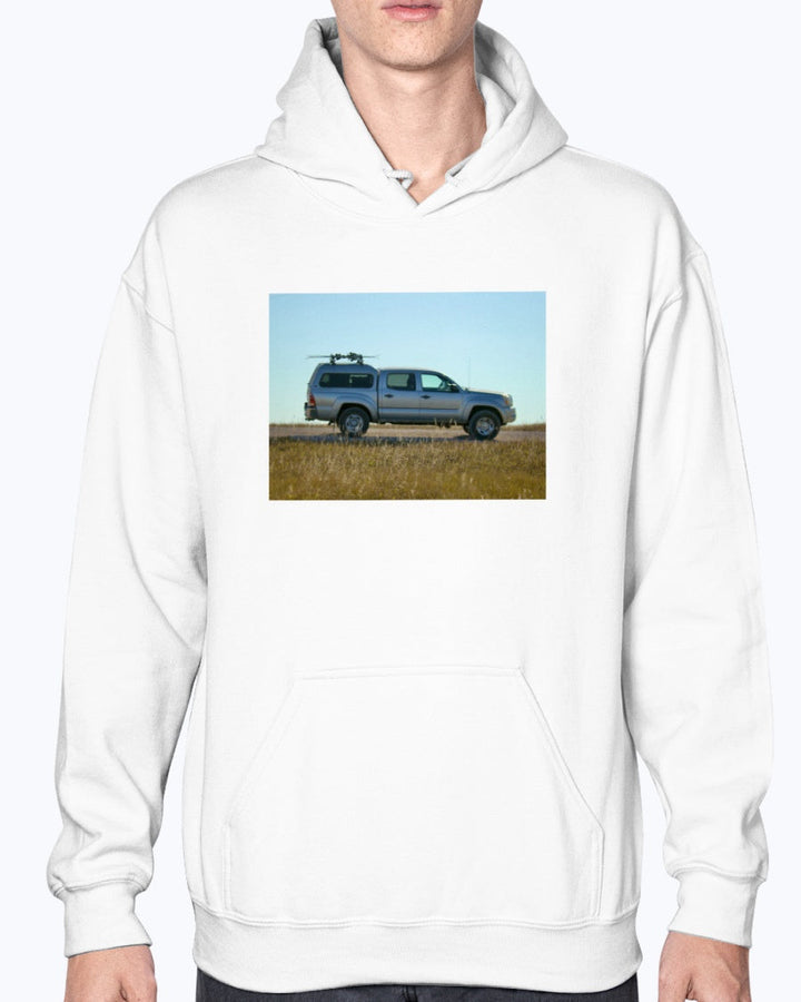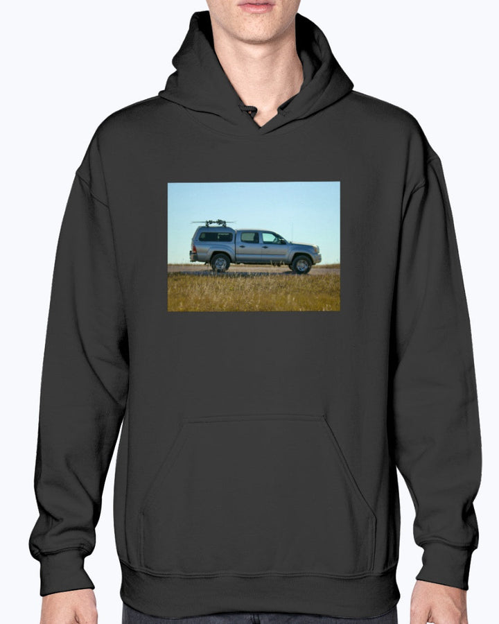 Lost Skier in a Tacoma, Bad Lands South Dakota, Moss Apparel, Unisex Hoodie