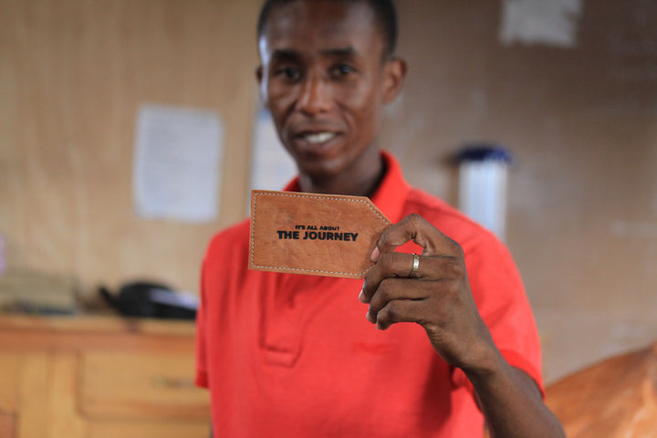 All of our leather- whether it is from the Noble Goat (one of the primary sources of protein in Haiti) sheep, or cow- is sourced in-country as a by-product of food. Talk about an authentic #notwasted story! Our leather products are handmade in “The Brothers” Workshop in Jubilee, a small developing community by the sea, on the outskirts of Gonaives. Founded by Benson Thermidor, this workshop employs over 20 people and is changing the story for people in this neighborhood.