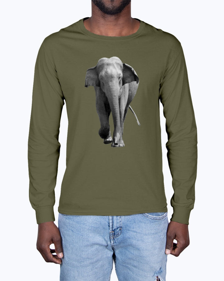 Male Indian Elephant Charging in Sri Lanka, Asian Elephant, Elephant lovers wildlife fans, Moss Apparel, Unisex Long Sleeve T-Shirt