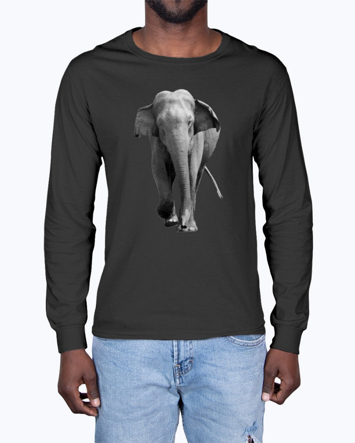 Elevate your essentials with our Elephant Charging premium long sleeve tee, crafted from 100% Airlume combed and ring-spun cotton for a smooth, breathable feel. This shirt offers a tailored silhouette with fitted sleeves, ribbed cuffs, and side-seamed construction for a clean, modern fit that moves with you—from trail days to city nights.