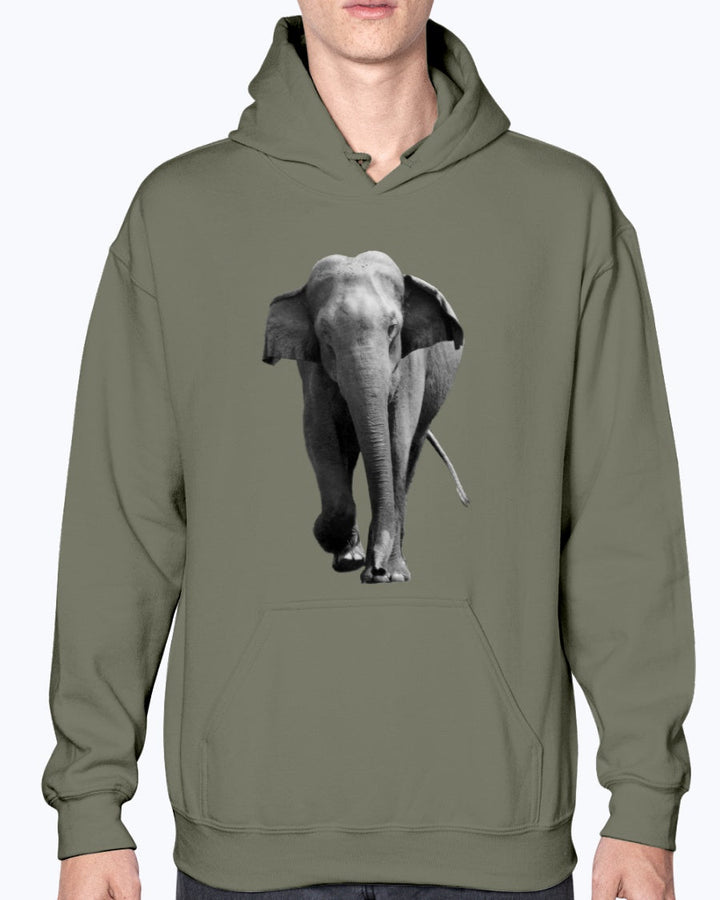 Male Indian Elephant Charging in Sri Lanka, Moss Apparel, Unisex Hoodie