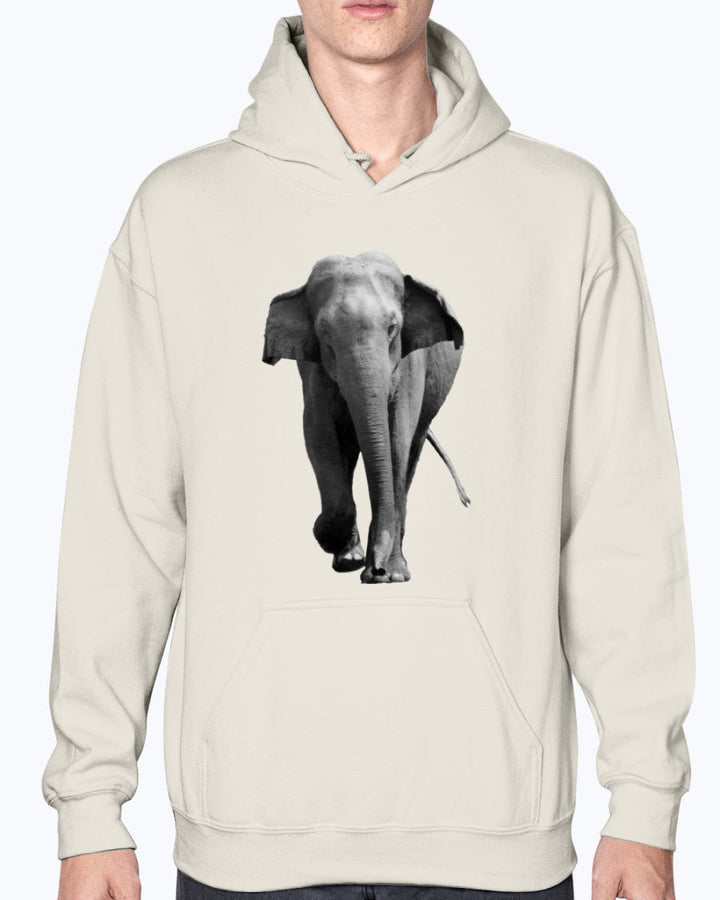 Experience the raw power of nature with our Charging Elephant Hoodie. This isn't just cozy apparel; it's a thrilling moment frozen in time, featuring a striking photograph by Robert Moss of a male Indian Elephant, in full charge, confronting a truck in Sri Lanka. The vintage feel of the environmentally-friendly cotton fabric perfectly complements the rugged, adventurous vibe of this incredible encounter, making it an undeniable statement piece.