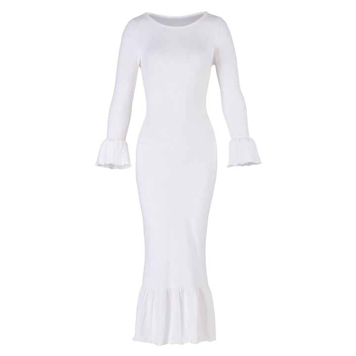 MARJORIE Bamboo Ruffle Dress In Off-white