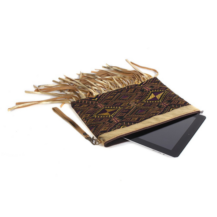 Metallic Leather & Embroidery Wristlet iPad | Tablet Bag - Thailand