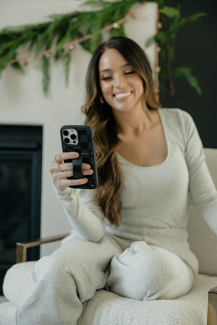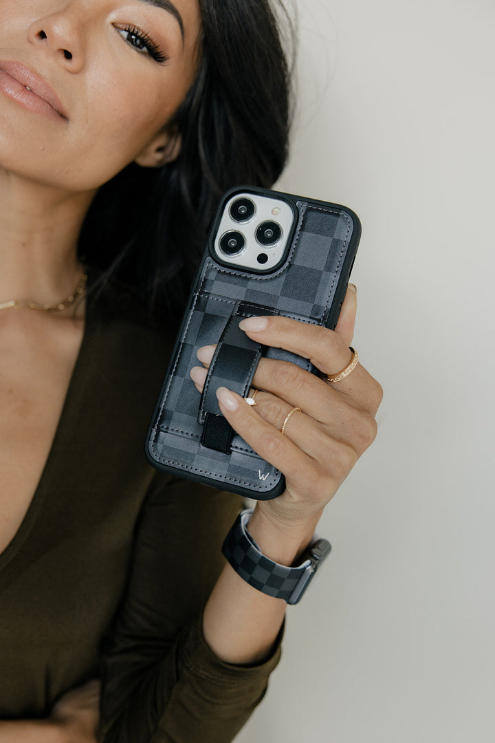 Pair this case with the coordinating Midnight Check wrist lanyard and Apple watch band and you're good to go!