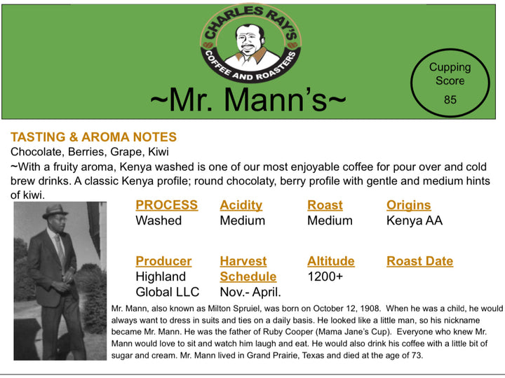 Mr. Mann's (Farm to Cup coffee from Highlands Global Coffee)