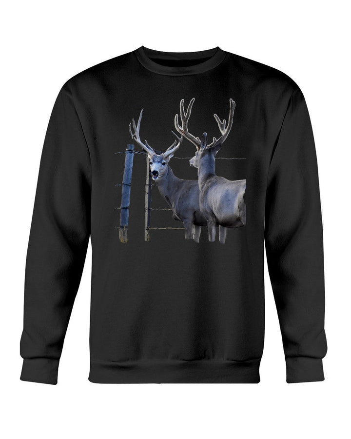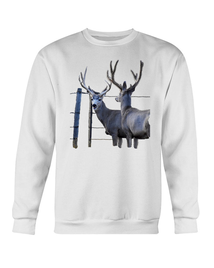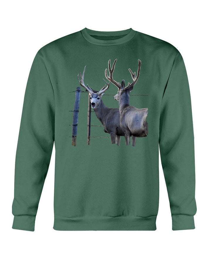 Mule Deer and Barbed Wire Fencing, Wyldlife for Tomorrow, Moss Apparel, Crewneck Sweatshirt