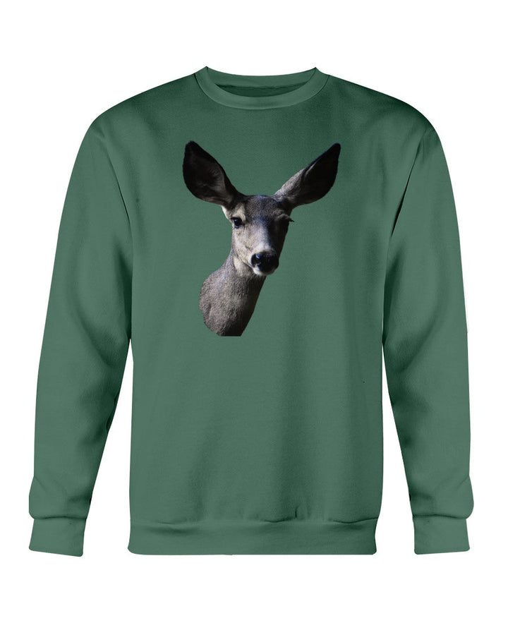 Mule Deer Gaze, Wyldlife for Tomorrow, Moss Apparel, Crewneck Sweatshirt