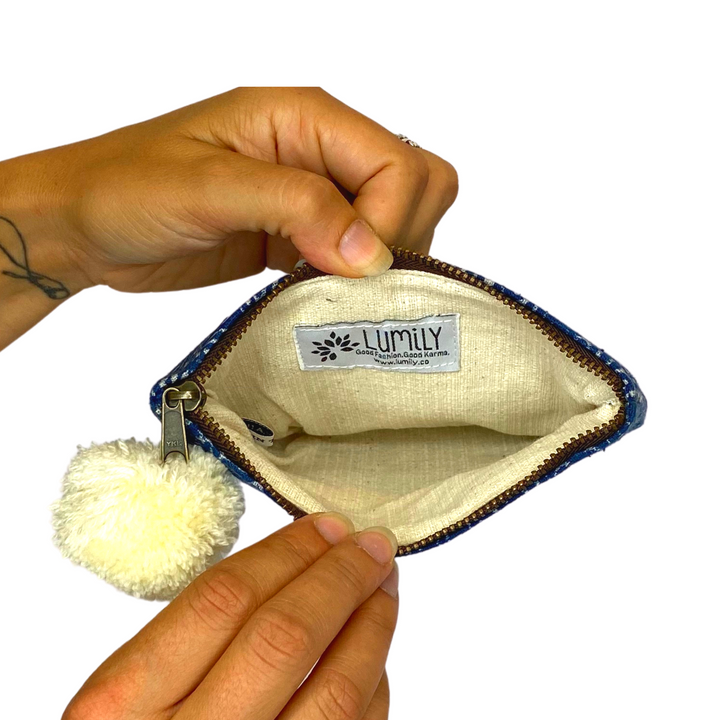 Introducing the Hmong Oasis Batik Clutch – the ultimate statement accessory for any boho babe! Hand-stamped with love by our talented artisans in Thailand, this clutch features striking batik fabric that's as unique as you are. With a sturdy metal zipper and a fun and playful 2" pompom, this clutch is the perfect combination of style and function.