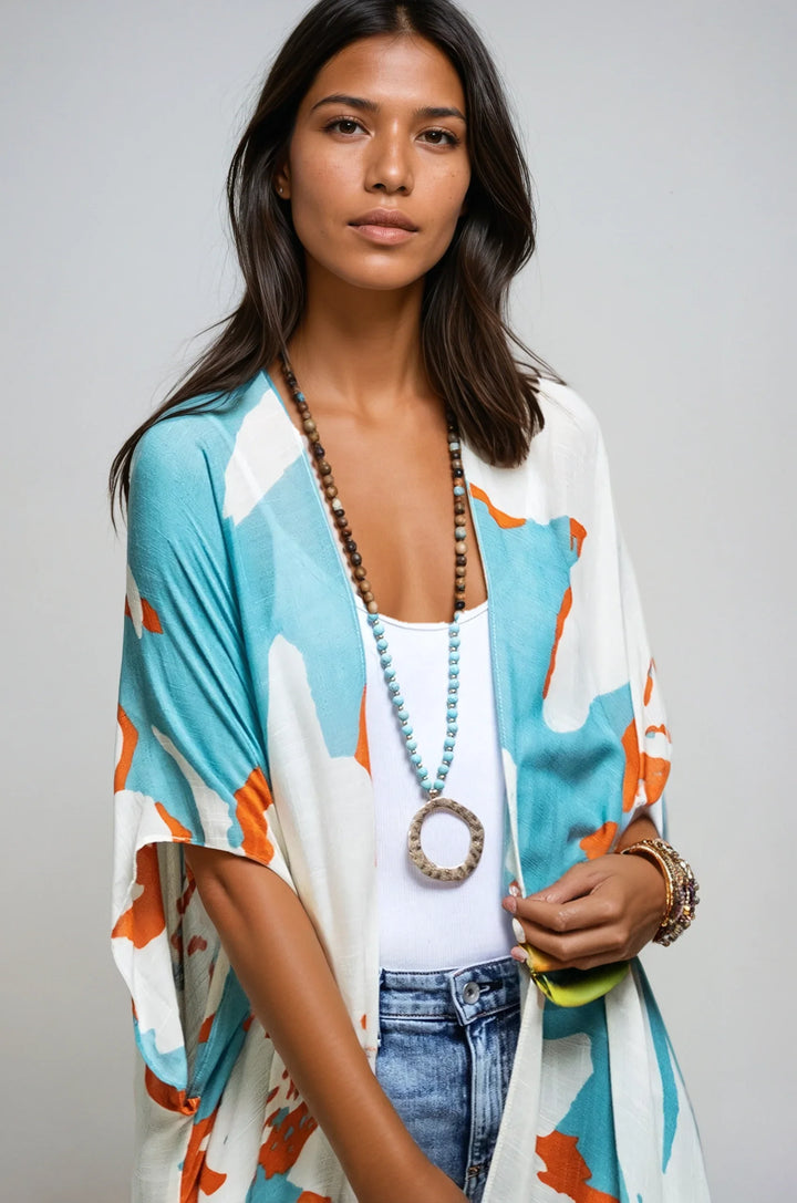 Crafted from 100% viscose, it’s lightweight, flowy, and oh-so-soft against your skin. The long silhouette (approx. 36" L x 40" W) drapes beautifully, adding an elegant touch to your beach looks, brunch fits, or even cozy loungewear days. Pair it with your favorite tank and denim shorts for a relaxed vibe, or belt it over a simple dress for a polished, boho-chic outfit.