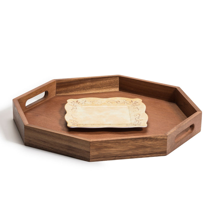 - Kalmar Home's Octagon Acacia Wood Serving and Charcuterie Trays - a stylish and functional way to serve and showcase culinary creations, display decorative items or use as a stunning centerpiece on a table or kitchen island.