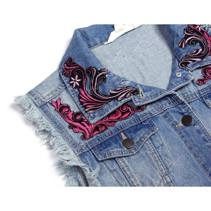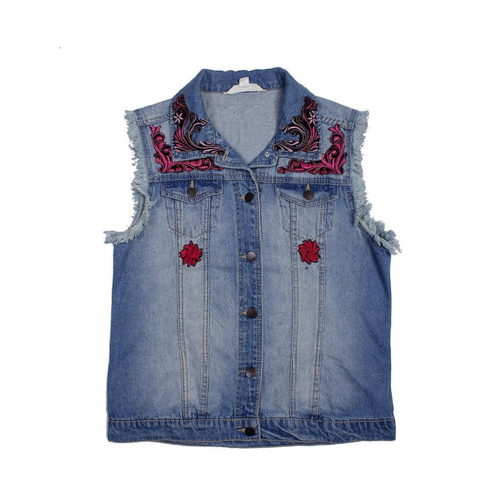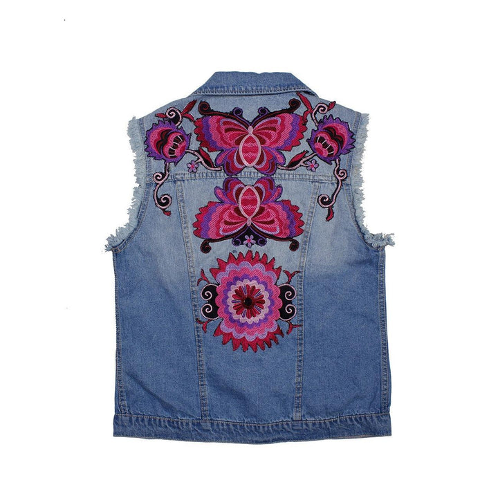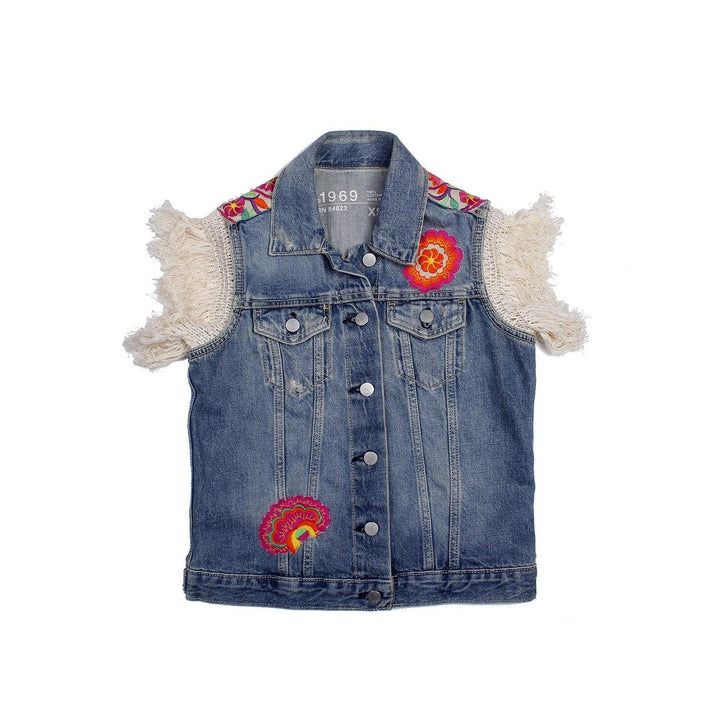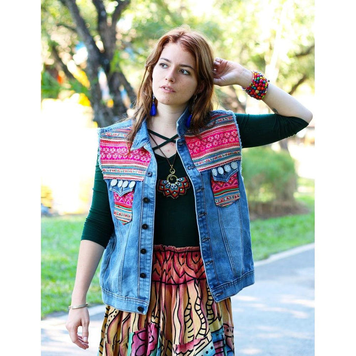 One of Kind Demin Embroidered Vest with Upcycled Hmong Fabrics - Thailand