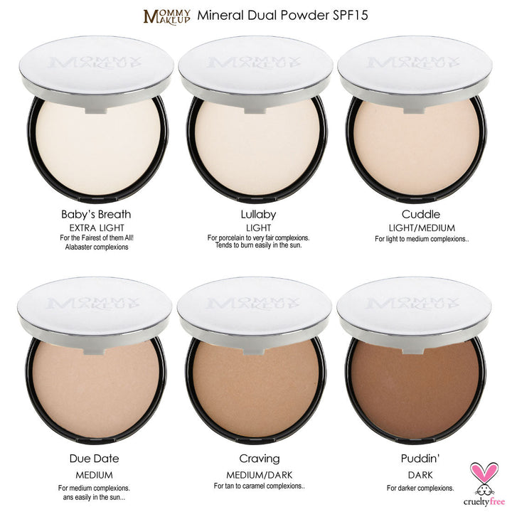 LULLABY (Light) - For porcelain to very fair complexions. Tends to burn easily, CUDDLE (Light/Medium) - For light to medium complexions, DUE DATE (Medium) - For medium complexions. Tans easily in the sun, CRAVING (Medium/Dark) - For tan to caramel complexions, PUDDIN' (Dark) - For darker complexions |