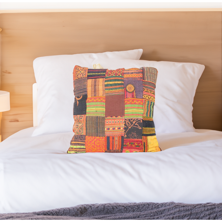Ethically made by Thailand hill tribe artisans using sustainably sourced materials, this patchwork style pillow cover will enhance your home decor. Inspired by traditional long-stitch embroidery techniques, this beautiful piece of textile art that reflects the cultural heritage and history of the Hmong people.