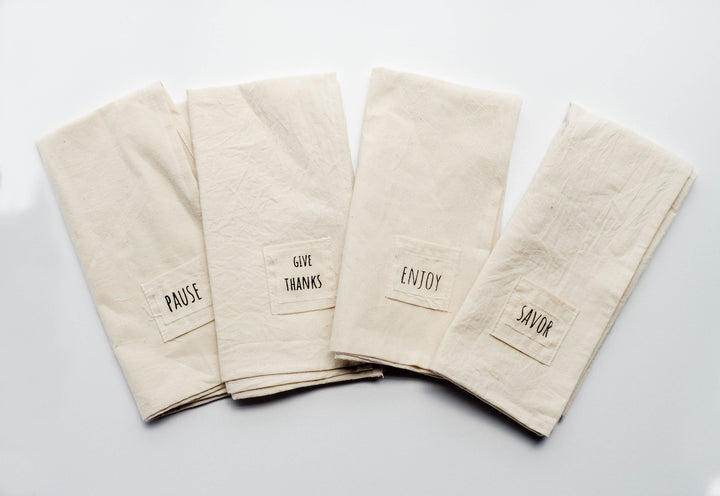 We’ve upped our classic cotton napkins with locally-printed words that remind us of what’s really important when we gather around a table for a meal: to gather, and to pause, give thanks, enjoy, and savor. The best part? The word tags also work as a "pocket" to hold tableware, flowers, notes, place cards, or whatever else your imagination desires! Also, great for the holidays, you can get creative in using them for Thanksgiving, Christmas, Easter, and more!