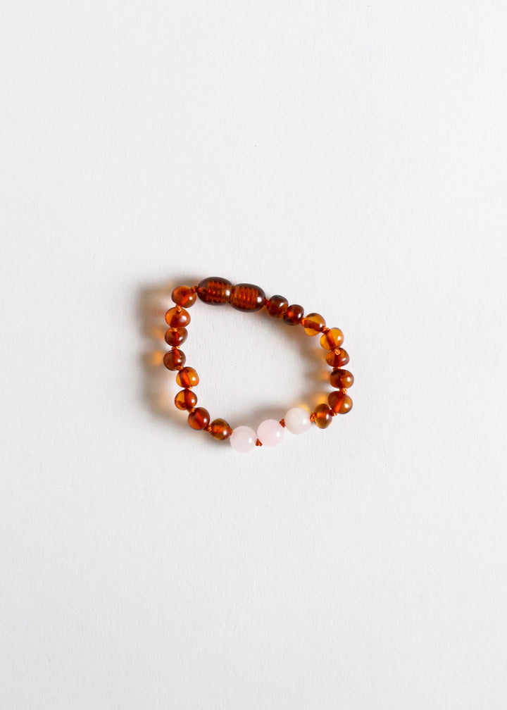 Polished Cognac Baltic Amber + Rose Quartz || Anklet or Bracelet