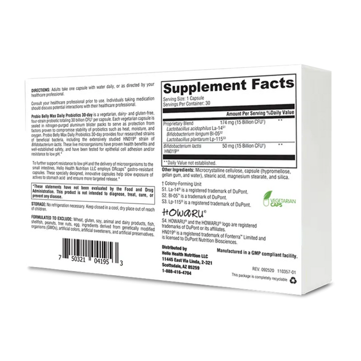 ProbioMax® Daily DF is a vegetarian, dairy- and gluten-free, four-strain probiotic totaling 30 billion CFU† per capsule. Each vegetarian capsule is sealed in nitrogen-purged aluminum blister packs to serve as protection from factors proven to compromise stability of probiotics such as heat, moisture, and oxygen. ProbioMax Daily DF provides four researched strains of beneficial bacteria, including the extensively studied HN019® strain of Bifidobacterium lactis. These live microorganisms have proven health benefits and well-established safety, and have been tested for epithelial cell adhesion and/or resistance to low pH.*