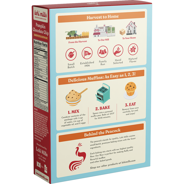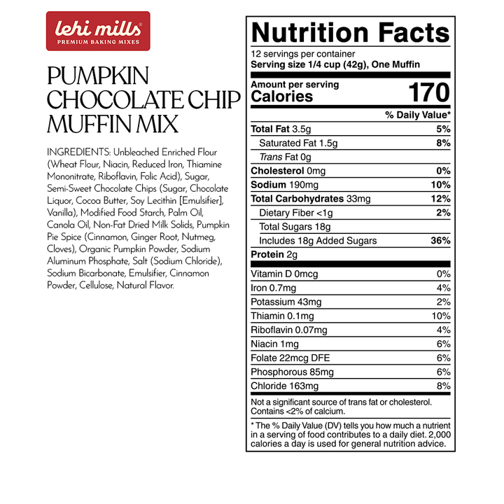 Embrace the warm, comforting flavors of fall with Lehi Mills Pumpkin Chocolate Chip Muffin Mix. Our premium mix combines the rich, spiced taste of pumpkin with decadent chocolate chips, creating a muffin that’s perfectly moist and irresistibly delicious. Easy to prepare and made with high-quality ingredients, these muffins are perfect for breakfast, snack time, or dessert. Savor the delightful blend of pumpkin and chocolate in every bite, and make any day feel like a cozy autumn morning.