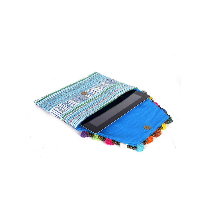What sets this clutch apart is not only the skilled craftsmanship but also the exceptional fabric it's made from. It's upcycled from a traditional Hmong baby carrier, infusing this piece with cultural heritage and eco-consciousness. The spacious interior is thoughtfully designed with a zippered pocket, providing ample room for your tablet, iPad, or other daily essentials.